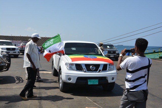 second picture is of the Ethiopian delegation visiting Berbera port before they signed the business deal with Somaliland. Normally 2 countries flags are represented when a delegation visit