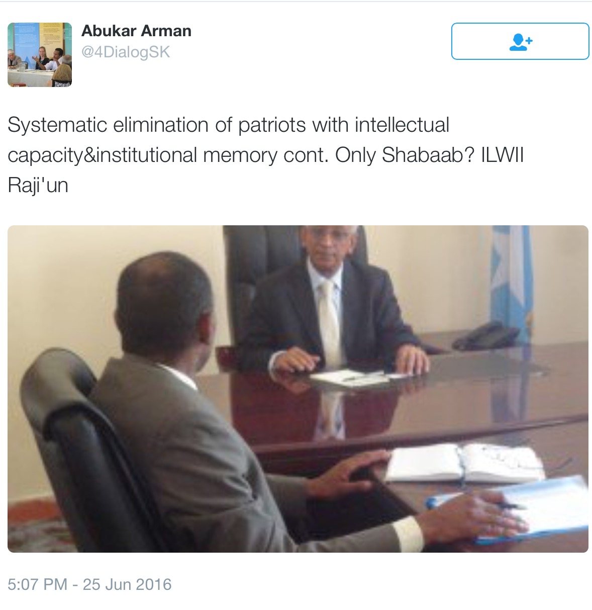 He's Madow. This is where his hatred for a stable United Somalia comes from. Don't take him seriously. Our problems don't even concern him.