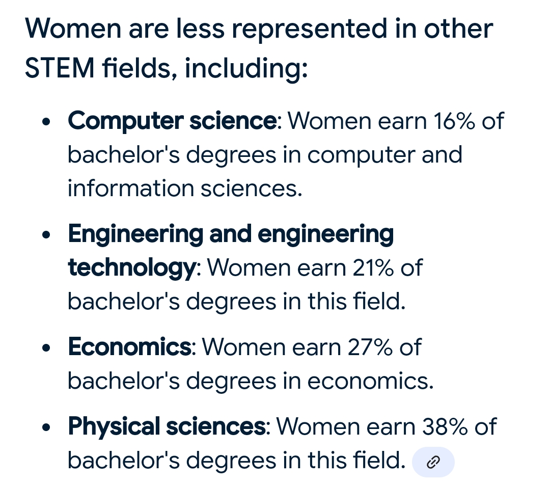 We have more chicks graduating with nursing degrees than we do have men graduating with cs and other engineering degrees.