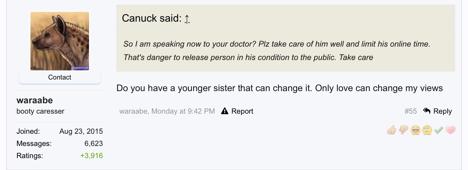 Dumb middle aged fattie. Stop looking for my attention. Btw that was a normal post on a thread, not a private message.