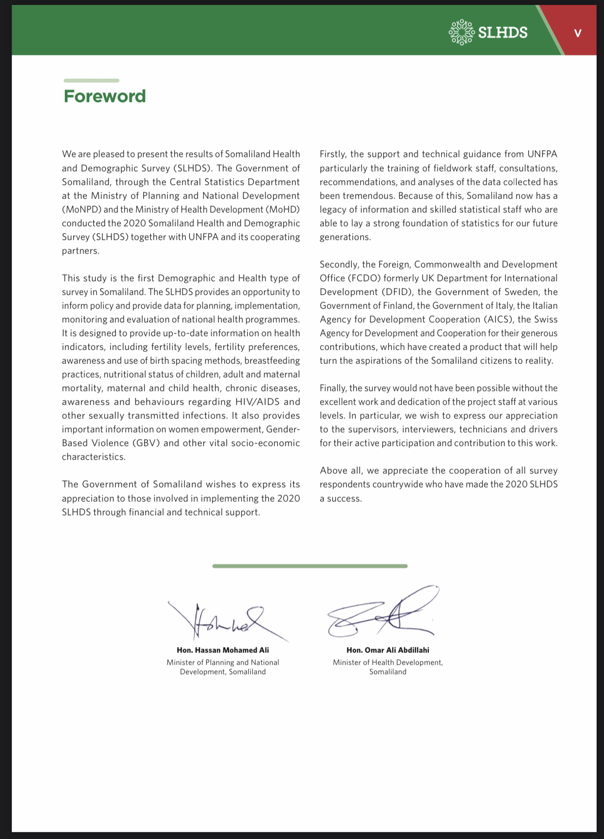 UNFPA visits 6,000 households and conducts a survey that includes more than 35,000 people. Publishes a 300 page report that is painfully detailed. Report is then signed off on by Somaliland’s minister of planning and Somaliland’s minister of health.