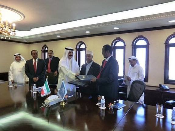Farah Ali Shire 2013 Puntland Finance Minister signing 2013 Agreement of loan of 10 Million USD for Garowe Airport and Makhir Uni.