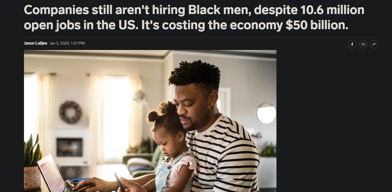 This is the type of shit Black men have to face despite being desperate for a job. Imagine being hired for your gender, well you don't have to imagine. Black men have so few opportunities in this racist-sexist capitalistic world.