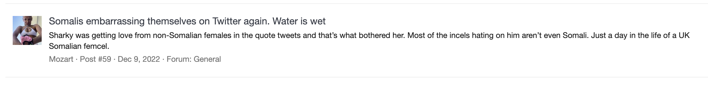 Check my edit. Most hate comes from fobs and qoraxjoog people. Diaspora hooyo mataalos are not the one leaving mean comments. Many members of nn are fobs even, remember macawisley guy? He was a fob who joined those losers.